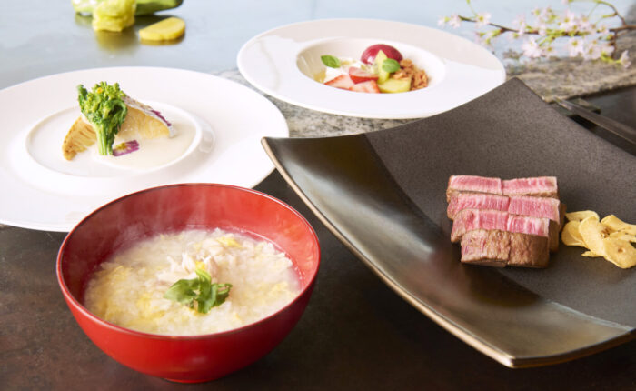 黒毛和牛の鉄板焼と河豚雑炊を主役に据えた、初春限定のランチコース。河豚は地域によって「ふく」とも呼ばれ、福に通じる縁起の良い食材として親しまれてきました。新たな季節の始まりに、皆様へ福が訪れることを願い、滋味深い河豚雑炊としてお届けいたします。目の前で仕上げる鉄板焼の臨場感とともに、穏やかな昼のひとときをご堪能ください。