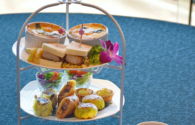 洋食と中華、両方の魅力を一度に味わえる特別なセレクションスタンド。ドリアやカツサンド、点心など、人気メニューを2段に美しく盛り付けました。バラエティ豊かなお料理をお得にご堪能ください。