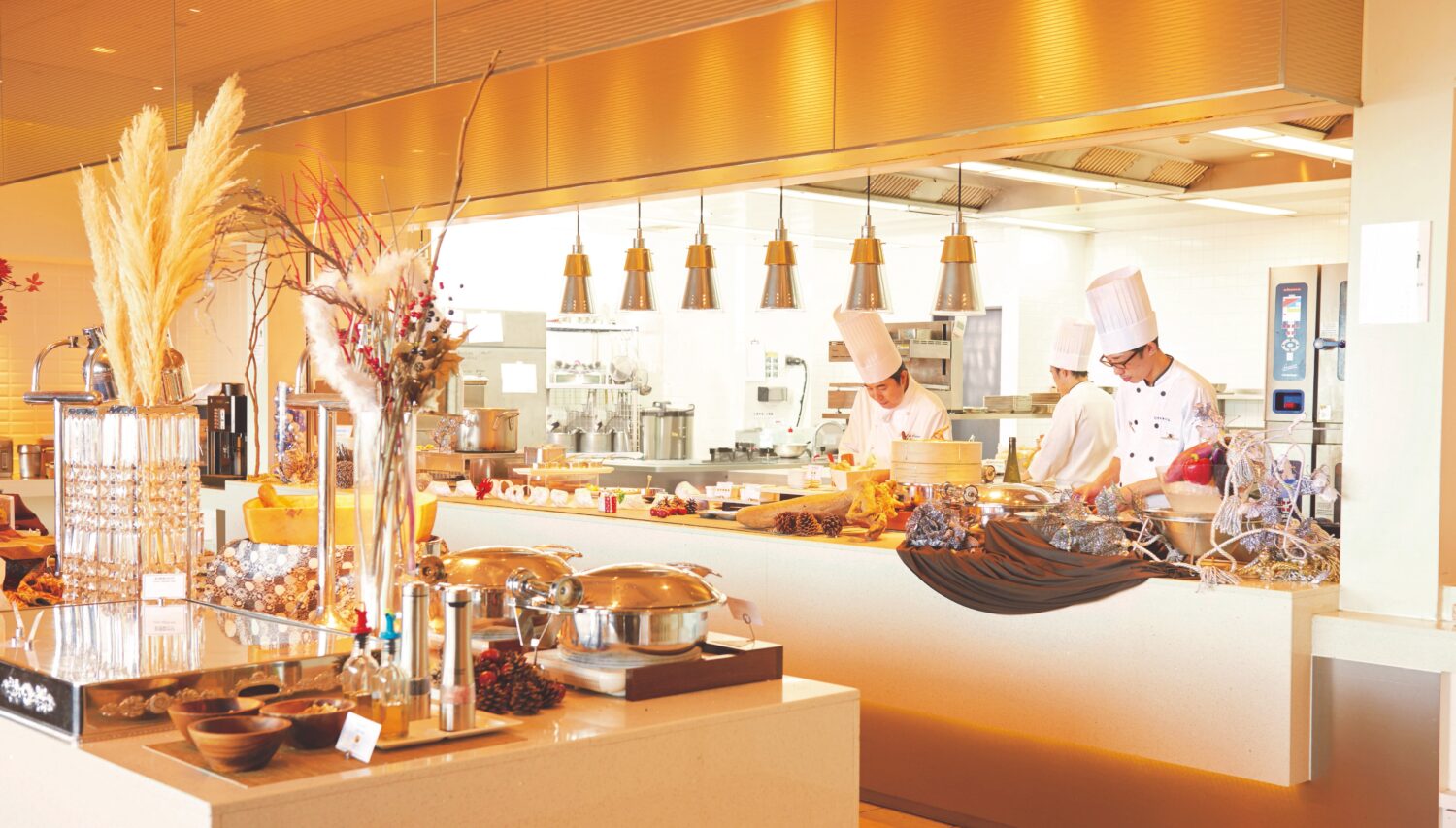 澄んだ冬の空気に包まれ、富士山がひときわ美しく映える季節。この景色とともにお楽しみいただける、クリスマス期間限定のランチブッフェをご用意いたしました。彩り豊かな料理が並ぶブッフェ台には、この時期ならではのメニューも登場。大切な方々と語らいながら、眼下に広がる冬景色を眺める優雅なひとときをお過ごしください。