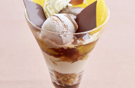ミルクチョコレートのパンナコッタに、芳醇なアールグレイジュレとジューシーなオレンジの爽やかさをプラス。チョコレートソースとフィアンティーヌのサクサク感、アイスクリームの冷たさが絶妙に調和。特別なひとときを彩る、贅沢な味わいのオレンジショコラパフェをお楽しみください。